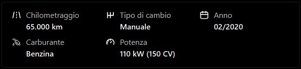 La dotazione tecnica e gli optional potrebbero in alcuni casi differire dalle effettive caratteristiche ed equipaggiamento del veicolo, a causa della non uniformità dei dati pubblicati dai vari portali. Si declina quindi ogni responsabilità se le informazioni consultate non corrispondono alle caratteristiche del mezzo.