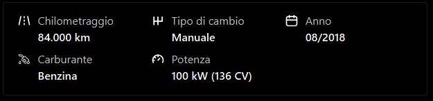 La dotazione tecnica e gli optional potrebbero in alcuni casi differire dalle effettive caratteristiche ed equipaggiamento del veicolo, a causa della non uniformità dei dati pubblicati dai vari portali. Si declina quindi ogni responsabilità se le informazioni consultate non corrispondono alle caratteristiche del mezzo.
